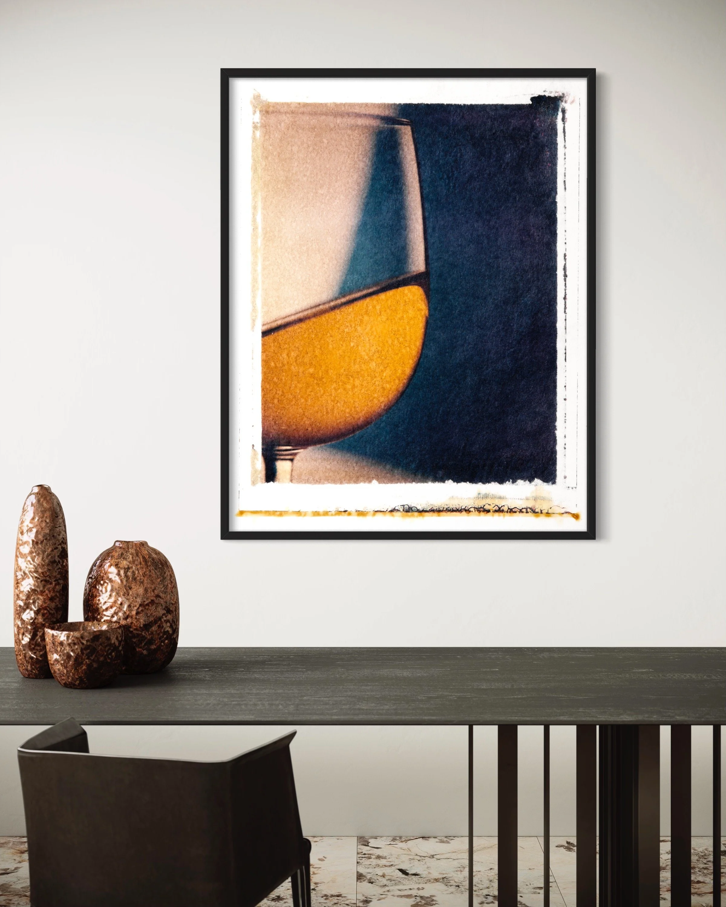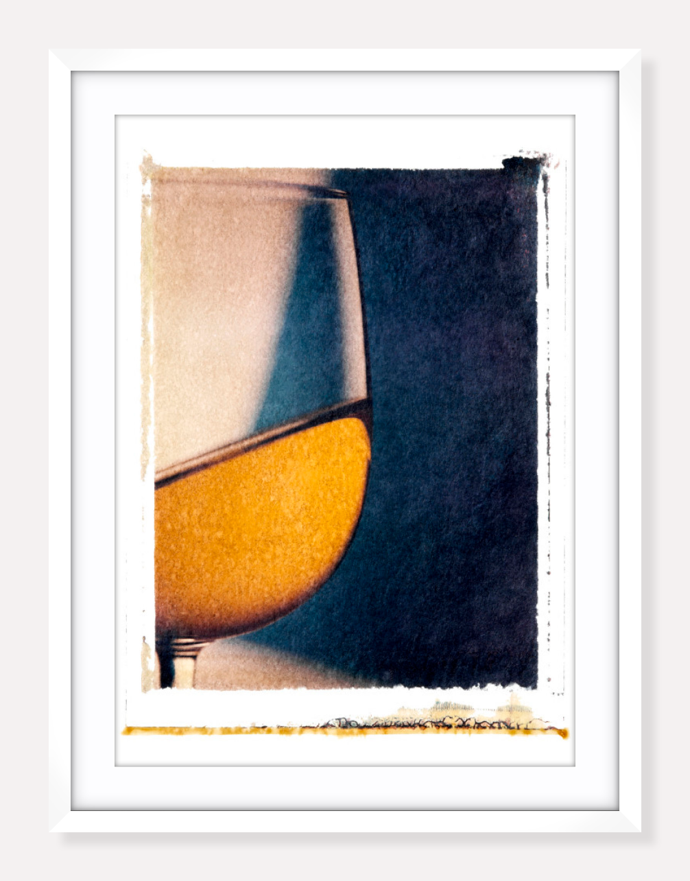 Within our Wine Art collection, you'll discover an exclusive series of Polaroid transfers. These alluring images are taken using a Sinar 5x4 studio view camera before the Polaroid emulsion undergoes a swift transfer onto diverse surfaces. The technique results in one-off textures and borders, transforming traditional Polaroid transfers into unique pieces of art.